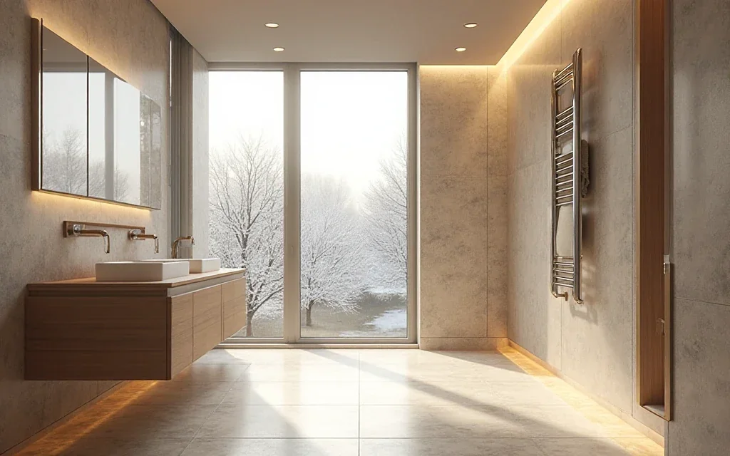 Eine Fußbodenheizung verteilt Wärme gleichmäßig im gesamten Raum und sorgt für ein besonders behagliches Wohngefühl. Sie ist energieeffizient, unsichtbar und ideal für moderne Badgestaltungen.